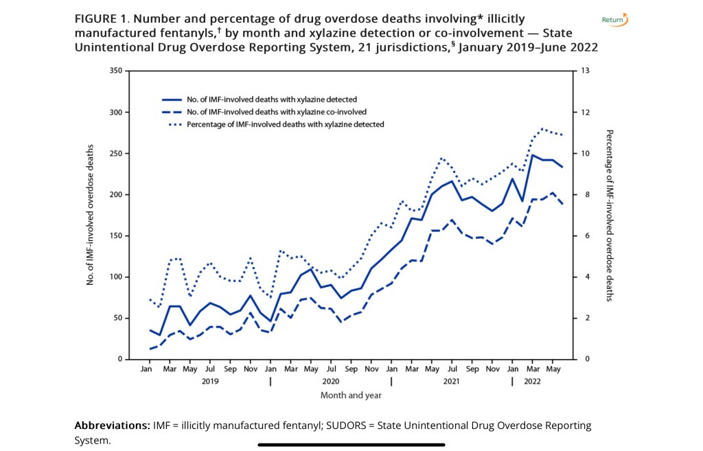 The recent edition of the CDC Morbidity and Mortality Weekly Report (MMWR) Weekly / June 30, 2023 / 72(26);721–727 contained the communication: Illicitly Manufactured Fentanyl–Involved Overdose Deaths with Detected Xylazine — United States, January 2019–June 2022