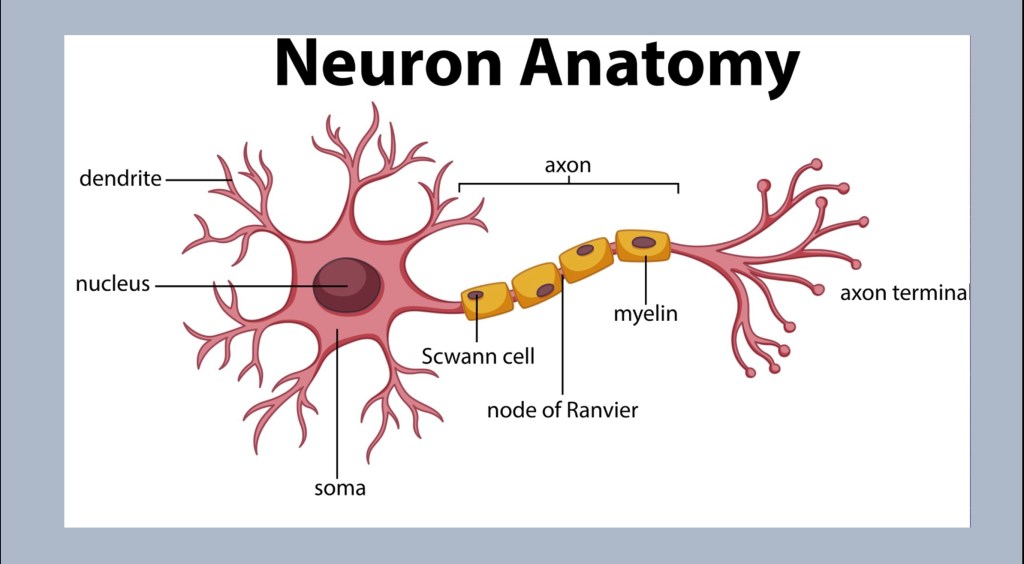 Axon – The axon is where the signal is transmitted from one place to the next. These can be as short as a millimeter in length to a meter or more. The signal is propagated as an action potential. This is an electrical impulse driven my ion flux across the cell membrane. They may be surrounded by a myelin sheath.