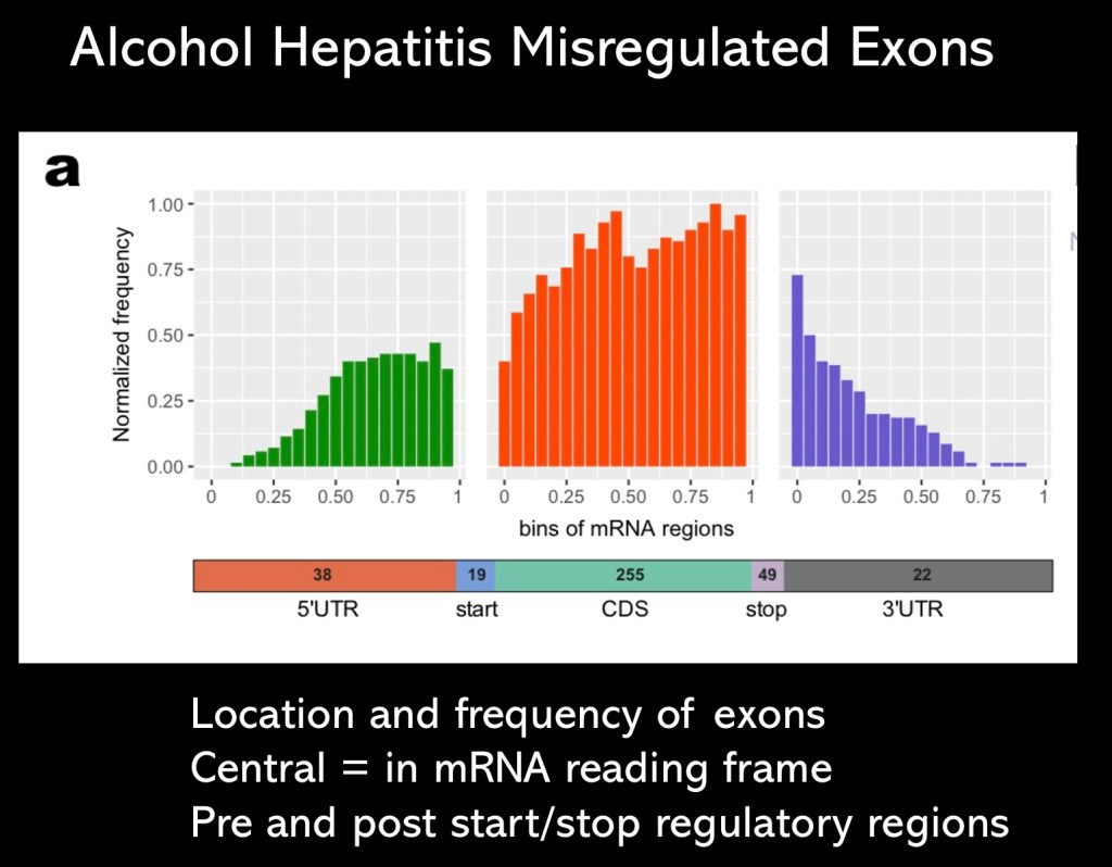 RNA alternative splicing is compromised in these cases with a large number of misregulated exons present. The study focuses on marked under expression of the ERSP2 binding protein and the Wnt regenerative signaling pathway.