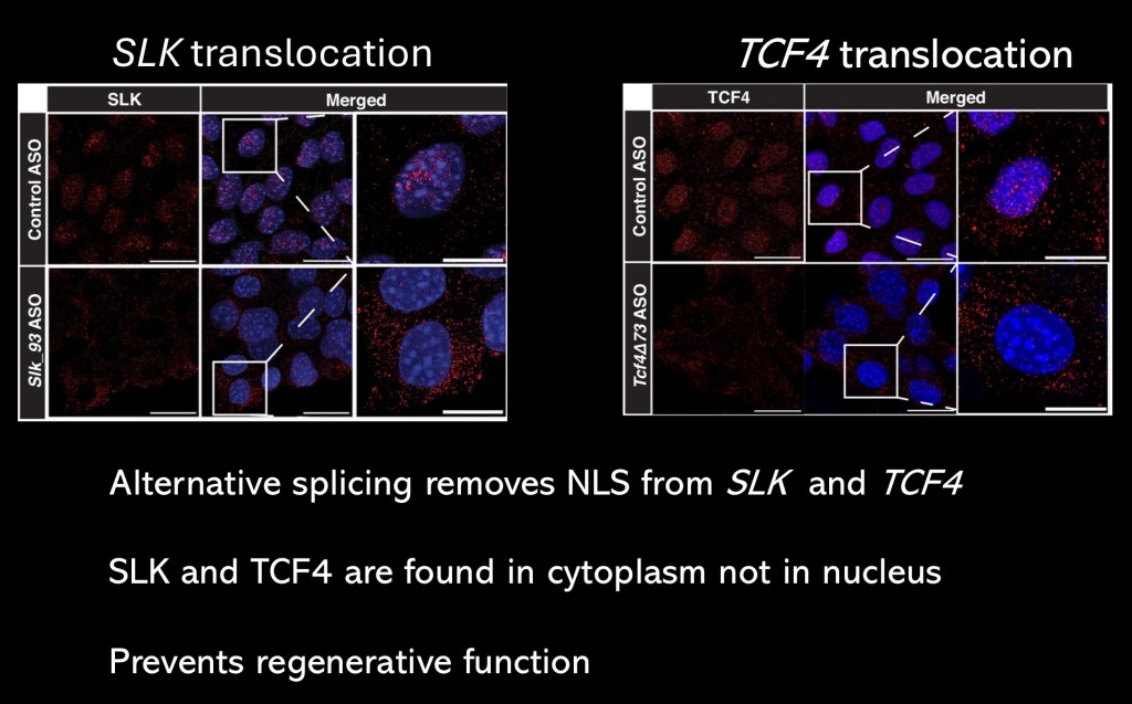 Using single nucleus sequencing the investigators found that in SLK and TCF 4 the NLS had been deleted by alternative splicing.