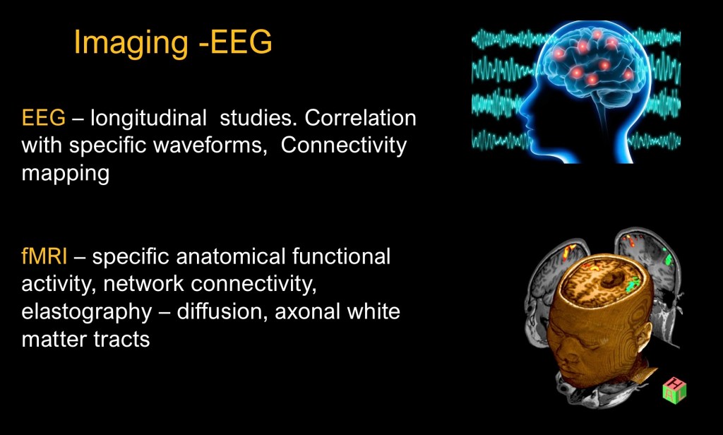 EEG and imaging studies are promising areas to investigate in multiomics studies. They are objective, reproducible methods to localize and characterize brain activity. EEG by electrophysiology and functional fMRI indirectly measuring focal brain activity by hemodynamics.