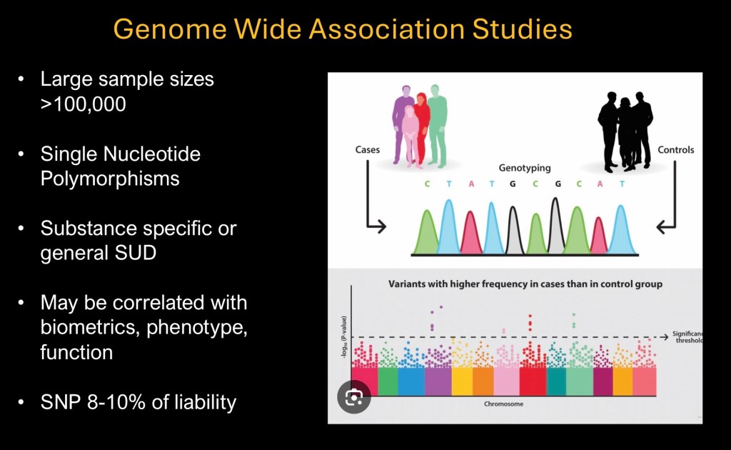 Substance use disorders have a strong heritability component. Twin studies estimate heritability factor of approximately 40-60%. Principles of genetics have been covered in a previous post. The studies we will be looking at in this post are largely based in genetic correlations.